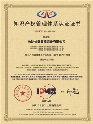 近日,長沙長泰智能裝備有限公司順利通過了知識產(chǎn)權(quán)管理體系認(rèn)證,正式獲得《知識產(chǎn)權(quán)管理體系認(rèn)證證書》,這標(biāo)志著長泰公司貫徹企業(yè)知識產(chǎn)權(quán)管理規(guī)范的工作邁上了新臺階。