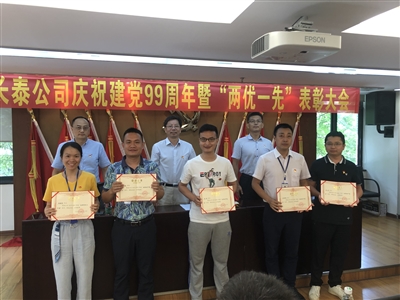 2020年7月1日下午,長(zhǎng)泰公司召開慶祝建黨99周年暨“兩優(yōu)一先”表彰大會(huì),通過(guò)重溫入黨誓詞、表彰先進(jìn)、講黨課,進(jìn)一步動(dòng)員廣大黨員干部提高認(rèn)識(shí),統(tǒng)一思想,力爭(zhēng)以高質(zhì)量黨建推動(dòng)高質(zhì)量發(fā)展,推動(dòng)長(zhǎng)泰公司取得新突破。會(huì)議由黨委副書記、紀(jì)委書記李農(nóng)主持。