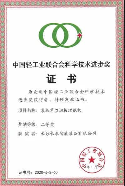 中國輕工業(yè)聯(lián)合會科學(xué)技術(shù)進(jìn)步獎是由中國輕工業(yè)聯(lián)合會設(shè)立的最高輕工科技獎項(xiàng),屬于國家部級科技獎勵,被認(rèn)為是輕工業(yè)的“榮譽(yù)勛章”。長泰公司漿板單刀切板理紙機(jī)榮獲中國輕工業(yè)聯(lián)合會科學(xué)技術(shù)進(jìn)步獎二等獎,充分體現(xiàn)了中國輕工業(yè)聯(lián)合會以及社會各界對該產(chǎn)品技術(shù)創(chuàng)新的認(rèn)可。