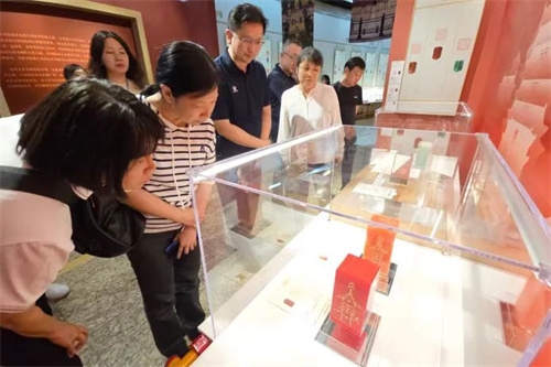 參觀中,大家認(rèn)真聆聽講解,仔細(xì)觀摩展品。一枚枚精美別致的印章,將新材料與篆刻文化完美融合,玻璃微珠、先進陶瓷、復(fù)合材料、特種水泥、碲化鎘發(fā)電玻璃等新材料印章讓人應(yīng)接不暇,生動展現(xiàn)了北京老城永定門到鐘鼓樓15個核心遺產(chǎn)景觀、建筑布局和歷史文化價值。在感受大眾篆刻藝術(shù)無窮魅力的同時,仿佛置身于北京中軸線氣勢恢宏、秩序井然的城市建筑群中,深刻感受北京中軸線作為城市文化脊梁的重要意義。