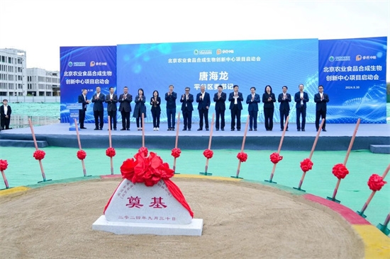 中國(guó)食品發(fā)酵工業(yè)研究院黨委書記、總經(jīng)理郭新光代表建設(shè)運(yùn)營(yíng)單位發(fā)言,項(xiàng)目管理單位和施工單位分別作表態(tài)發(fā)言。平谷區(qū)委書記唐海龍宣布項(xiàng)目開工,集團(tuán)領(lǐng)導(dǎo)與市區(qū)兩級(jí)領(lǐng)導(dǎo)嘉賓共同為北京農(nóng)業(yè)食品合成生物創(chuàng)新中心奠基。