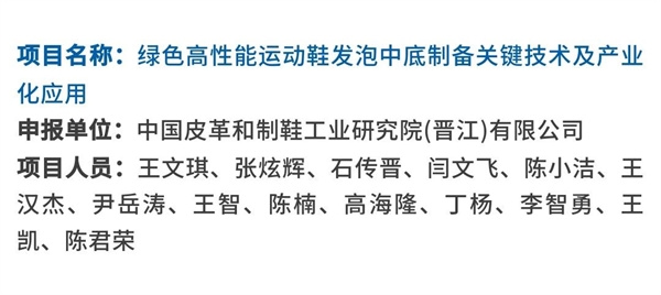 中國皮革制鞋院晉江公司申報的“綠色高性能運動鞋發(fā)泡中底制備關(guān)鍵技術(shù)及產(chǎn)業(yè)化應(yīng)用”項目,以典型鞋用EVA和TPU彈性體為基體,開展了綠色高性能運動鞋發(fā)泡中底制備關(guān)鍵技術(shù)及產(chǎn)業(yè)化應(yīng)用相關(guān)工作,揭示了相關(guān)材料改性調(diào)控機制、內(nèi)在發(fā)泡行為及作用機理。項目成果填補了制鞋行業(yè)在發(fā)泡EVA中底和生物質(zhì)改性TPU中底領(lǐng)域空白。