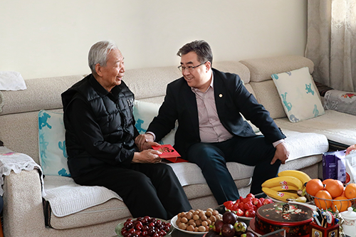 安勝杰一行來(lái)到84歲高齡的劉義生家中,表達(dá)國(guó)資委黨委、保利集團(tuán)黨委和保利中輕黨委對(duì)劉老的親切問(wèn)候,并向劉老致以新春祝福,祝愿他健康長(zhǎng)壽,多喜樂(lè)、常安寧。