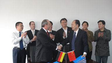 經(jīng)過(guò)數(shù)輪緊張談判,2009年11月18日,集團(tuán)公司所屬長(zhǎng)沙長(zhǎng)泰公司與德國(guó)徠斯機(jī)器人公司就工業(yè)機(jī)器人領(lǐng)域進(jìn)行業(yè)務(wù)合作簽定了合資合同。集團(tuán)公司副總經(jīng)理、長(zhǎng)泰公司董事長(zhǎng)馬思一先生與德國(guó)徠斯機(jī)器人公司代表、亞太區(qū)總裁Manfred Emont先生代表雙方分別在合資合同書(shū)上簽字。