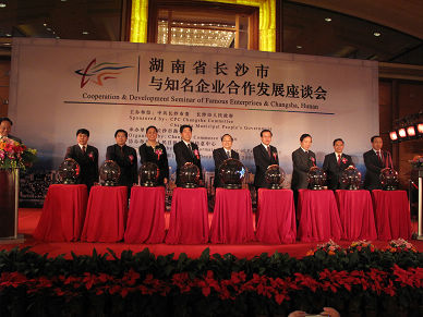 全國人大常委會原副委員長蔣正華在會上發(fā)表了講話。他認(rèn)為長沙在克服金融危機影響、實現(xiàn)又好又快發(fā)展上取得了令人稱道的成績,希望有實力的企業(yè)多到長沙看看,加強與長沙的交流合作,實現(xiàn)互利雙贏。中共湖南省委常委、長沙市委書記陳潤兒在會上介紹了長沙的發(fā)展成就和投資優(yōu)勢,表達(dá)了加強長沙與知名企業(yè)合作,實現(xiàn)互利共贏的良好愿望。會議由長沙市委副書記、市長張劍飛主持。