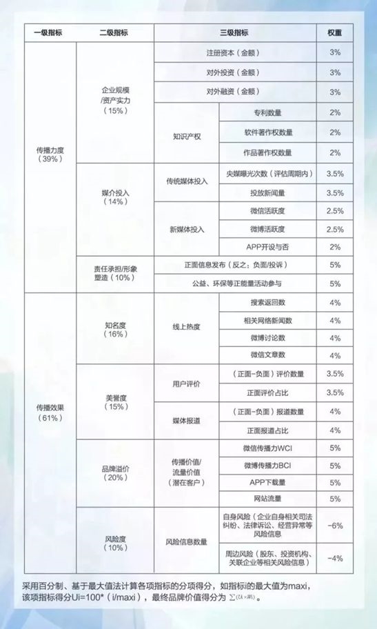 4.知名度:品牌為大眾所熟知的程度,出于可操作性,采用線上搜索數(shù)據(jù),包括在主流搜索引擎中的搜索返回?cái)?shù)、相關(guān)網(wǎng)絡(luò)新聞數(shù)、微博討論數(shù)、微信文章數(shù);
