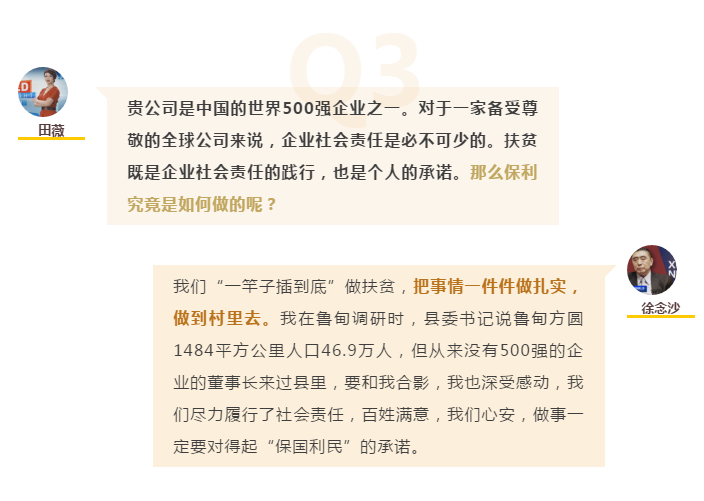 兩會(huì)期間,全國(guó)政協(xié)委員,中國(guó)保利集團(tuán)有限公司黨委書記、董事長(zhǎng)徐念沙接受中央廣播電視總臺(tái)CGTN World Insight節(jié)目專訪,講述保利脫貧攻堅(jiān)責(zé)任舉措。