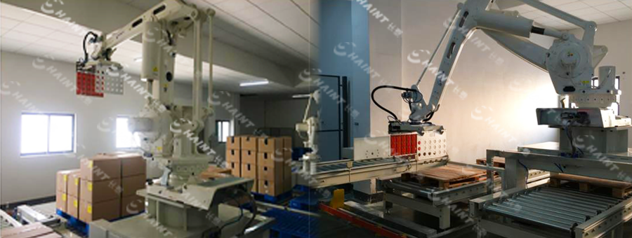 箱件智能碼垛系統(tǒng)可適用于多規(guī)格紙箱碼垛,通過夾具上的氣缸驅(qū)動(dòng)夾板夾取紙箱,勾爪托底,將紙箱碼放到指定托盤上,并可在PC客戶端對(duì)垛型數(shù)據(jù)進(jìn)行改動(dòng)設(shè)置,以滿足碼垛需求。